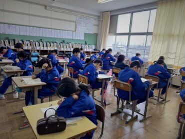 こちらの教室でも算数の期末テスト(学習のたしかめ)が行われていました。全集中モードです。目指せ200点!
