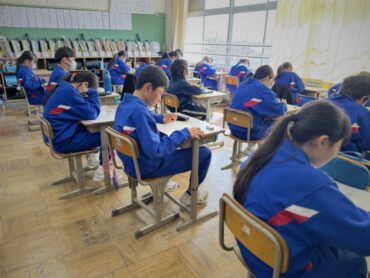 理科のテスト直しです。先生が大型テレビを使って、答えの説明をしているところです。直しが終わった後は先生に提出しました。この後、期末テストが待っていたようです。直しの成果が出せたでしょうか。