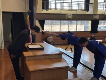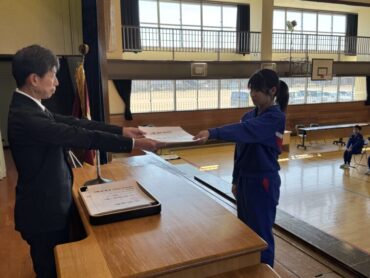 卒業証書授与 一人一人全員に練習用の仮の卒業証書を手渡しました。
