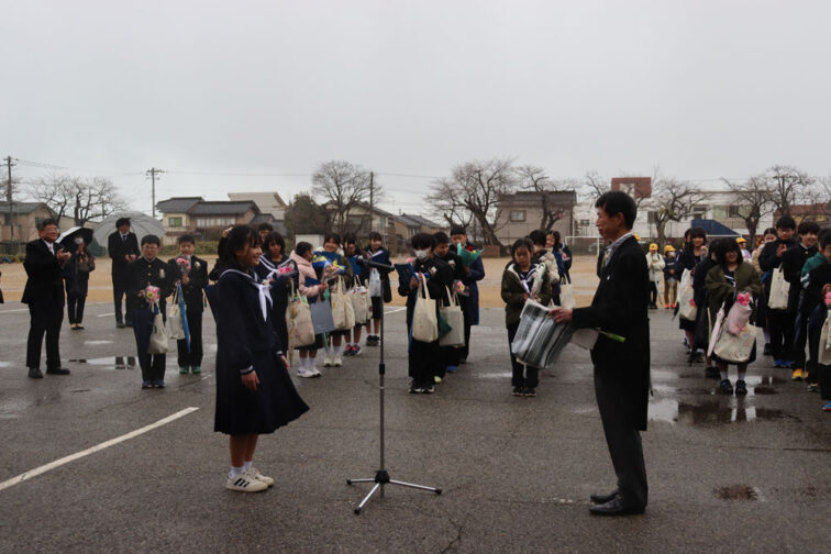 担任の先生方にお礼の花束が手渡されました。