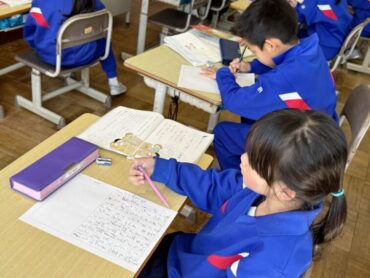 国語「いいこといっぱい一年生」という授業でした。1年生での出来事を思い出して、作文を書きました。一生懸命に書いている子、書き終わって読み直している子、友達のを見ている子、それぞれ頑張っていました。