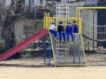 休み時間・・・天気もよくグラウンドでサッカーや遊具、鉄棒をする子がたくさん見られるようになりました。