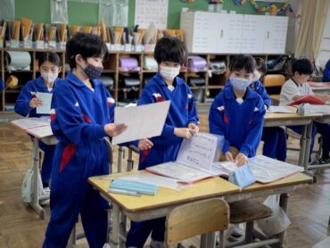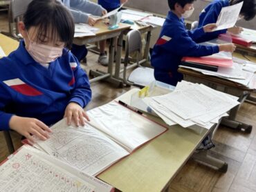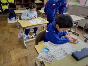 3学期ももうすぐ終わりです。1年生でする集会の準備をしていました。プログラムの下書きを描いたり、宝探しのお宝を作ったりしていました。笑顔いっぱいの集会にしましょう。