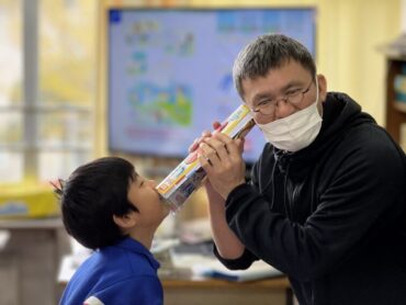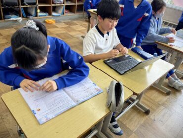 国語の授業で「大造じいさんとガン」の勉強をしているところでした。今日は残雪とハヤブサの対決の場面です。教科書の挿絵も参考にしながら、想像を膨らませて物語を読み深めました。