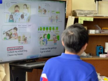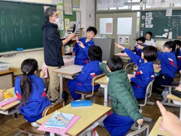 外国語活動の時間で、最初は大型テレビに提示された英文を声に出して読みました。スムーズに読んでいて感心しました。次は「Black Artゲーム」というものをしました。先生が出した問題の答えと、どうしてその答えになるかを考えて先生に伝えました。これがなかなか難しく、4年生はどんどんチャレンジして解答するのですが、正解になりません。正解は出たのでしょうか?