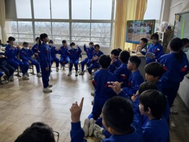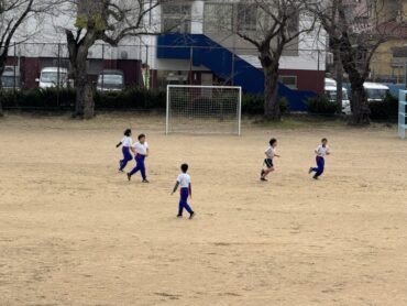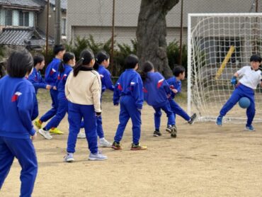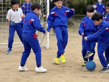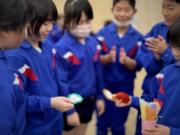 3年生はお楽しみ会でサッカーをしました。男女入り乱れて、活発にボールを追いかけています。試合後には係の児童から、勝利チームの選手に手作りのプレゼントが手渡されました。