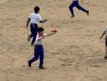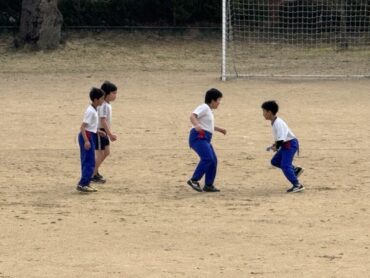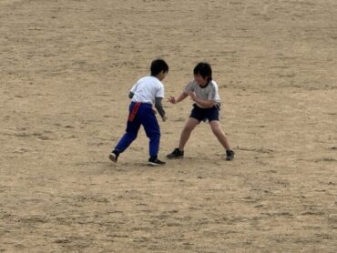お楽しみ会でしっぽ取りをしました。元気よくグラウンドを走り回りました。半袖で活動しているところに春の訪れを感じます。