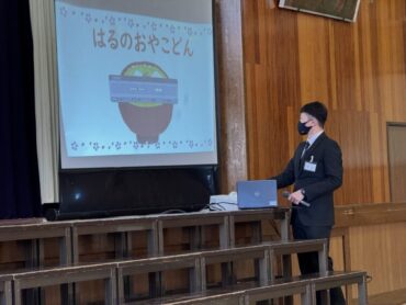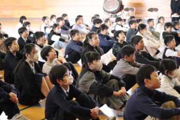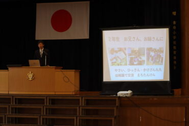 生徒指導の先生は、「はるのおやこどん」の話をしました。とてもよい姿勢で、最後までしっかりと話が聞けました。